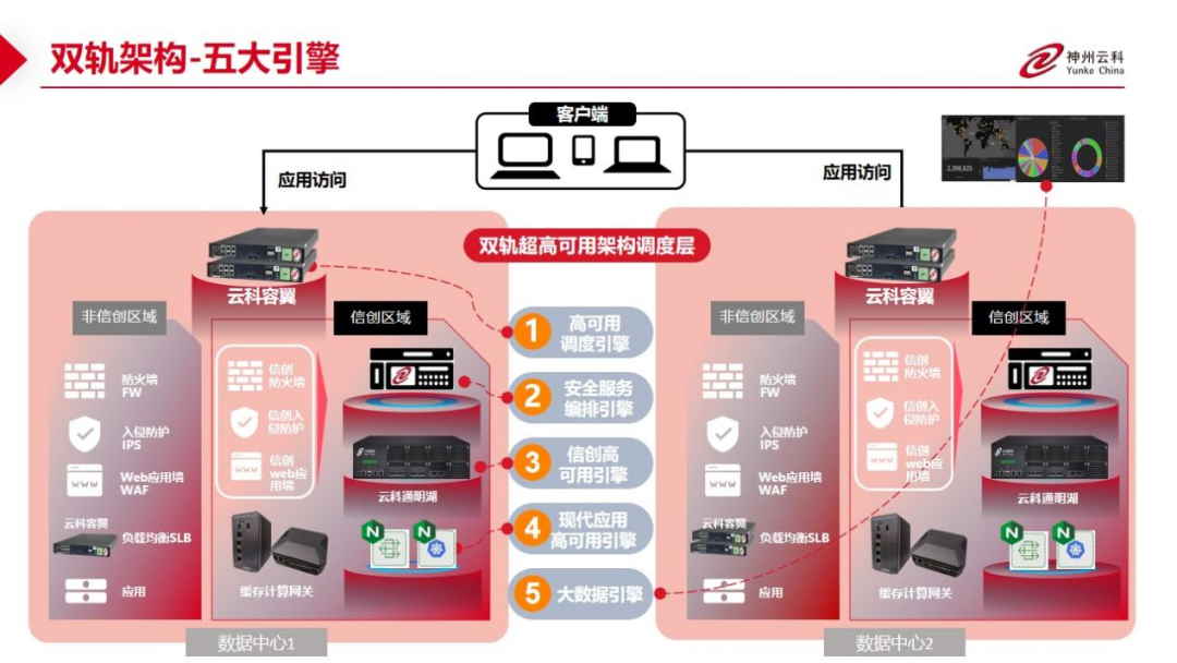 数据中心架构在自主创新的过程中分解为现有架构的非信创区和信创区的两个业务区域,在每个数据中心分为信创区和非信创区后,在两个区域之间的跨区跨域协同方法,mile米乐集团通过5大引擎实现多层次的应用可持续性实践。
